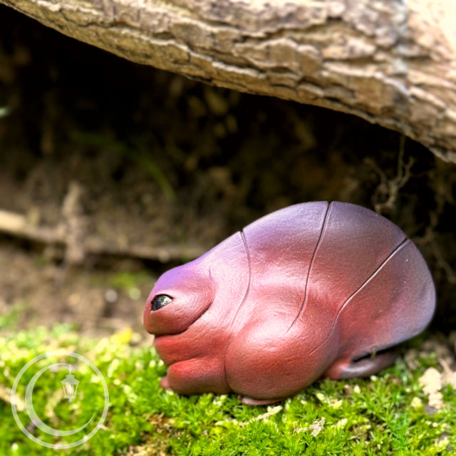 This is a one of a kind resin sculpture cast from an original sculpt. Each is hand painted with acrylics and is clear coat sealed. It measures about 3 inches from nose to tail and is approximately 1.5 inches wide. This is a toy intended for adult collectors, not small children or pets.